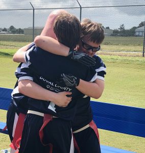 As Michael closes the chapter on the 2019 flag football season, he reflects on the lasting impact that his teammates made in his life. Michael will continue his studies at Wolfson High School in the IB program and plans to play on the NFSSE Eagles team until he leaves for college. In the distant future, Michael may be in the position to employ Jake, George, AJ, or another person with intellectual differences. Through this experience, he will know the many strengths and contributions they bring to a team, especially the ability to lift up others, even in the face of adversity.