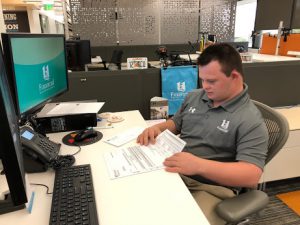 Also helping launch the initiative was Collin Hazelip, who has Down syndrome and two part-time jobs. He works two days a week as a bagger, customer greeter and cart collector at Publix and three a week as an office assistant at 121 Financial Credit Union.